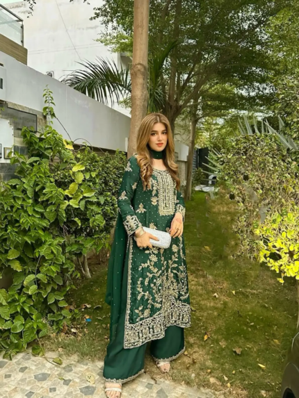 Designer 3-Piece Party Wear Suit Set with Real Mirror & Pearl Work – Premium Collection