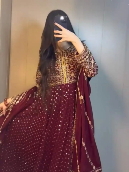New Arrival – Designer Sequins & Zari Embroidered Anarkali Gown with Dupatta
