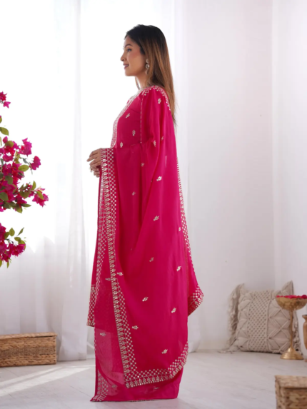 New Designer Party Wear Chinon Silk Top and Plazzo Set with Embroidered Dupatta