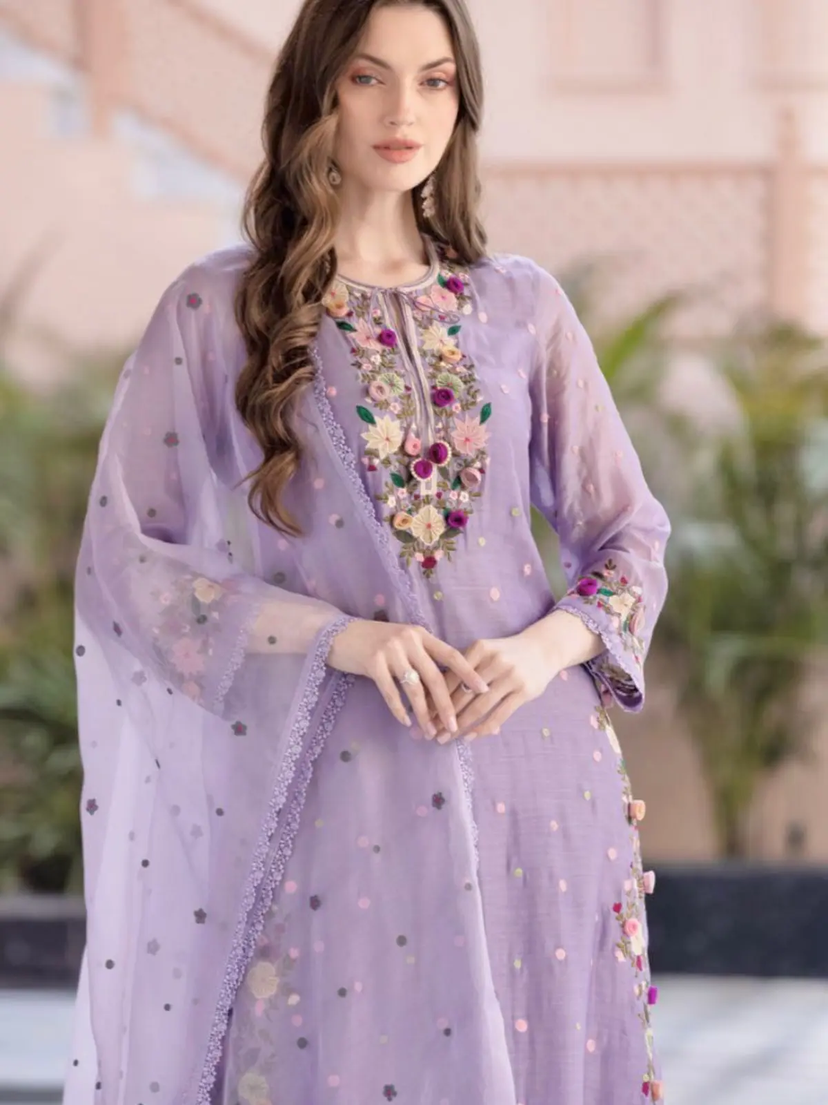 LG-1987 – Designer Roman Silk Suit with Sequence Embroidery, Plazzo, and Dupatta