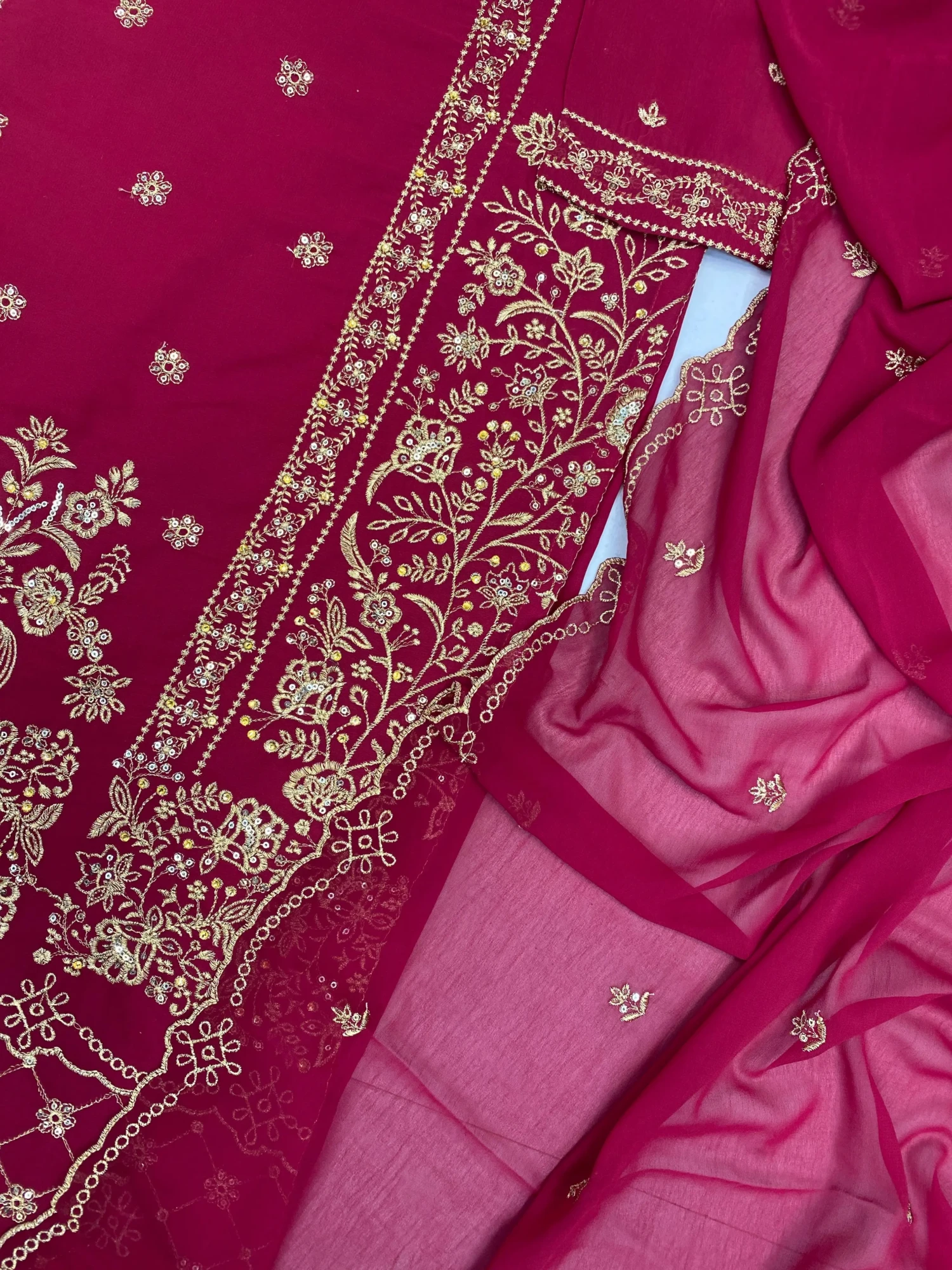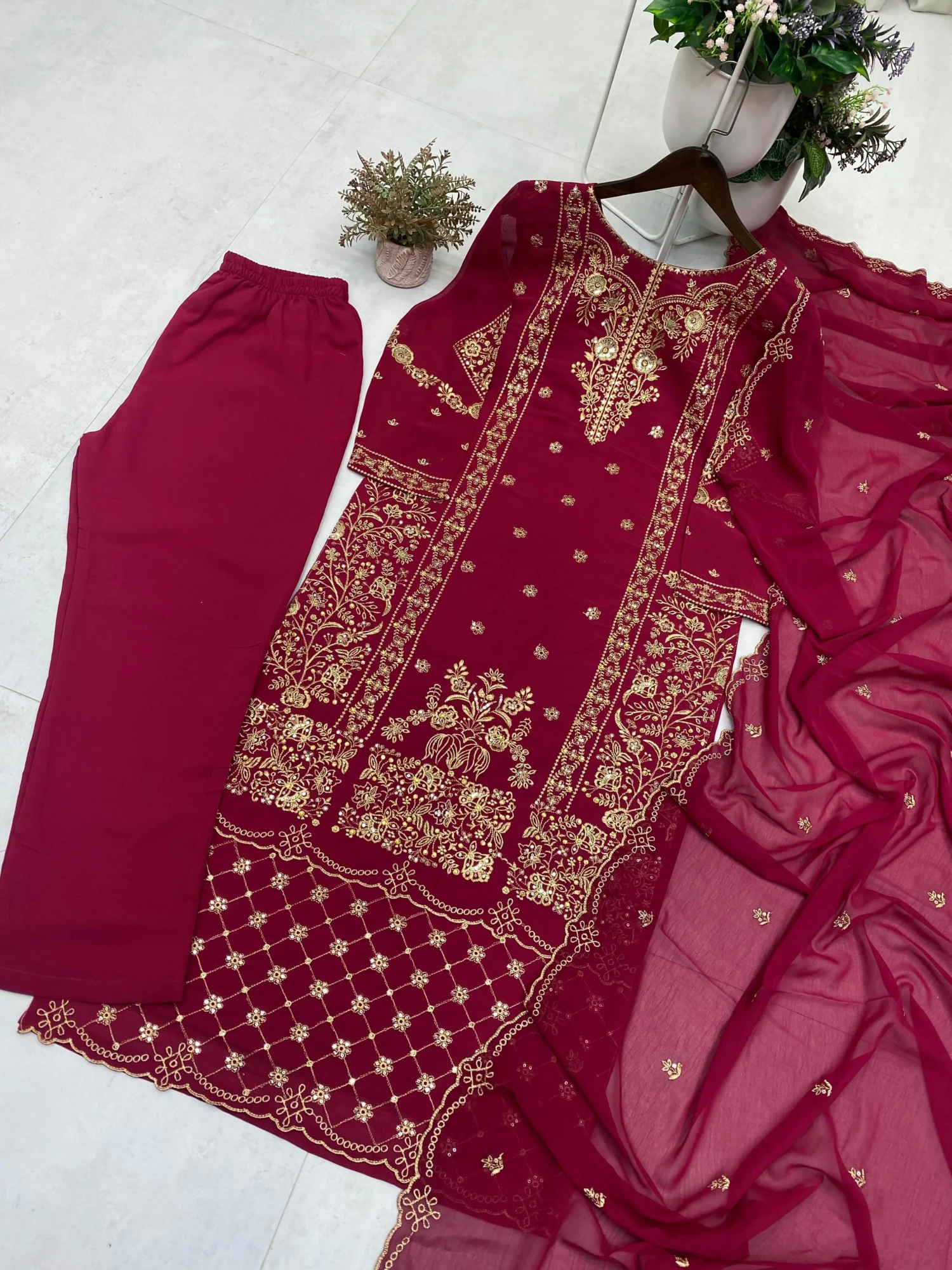 Designer Georgette Suit Set with Sequin & Diamond Embroidery – Top, Pant & Dupatta | BE-383