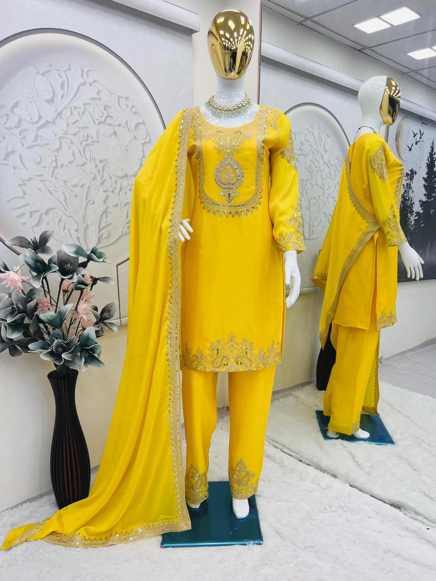 Designer Heavy Chinon Silk Party Wear Suit Set with Embroidery & Sequins – SSC-666