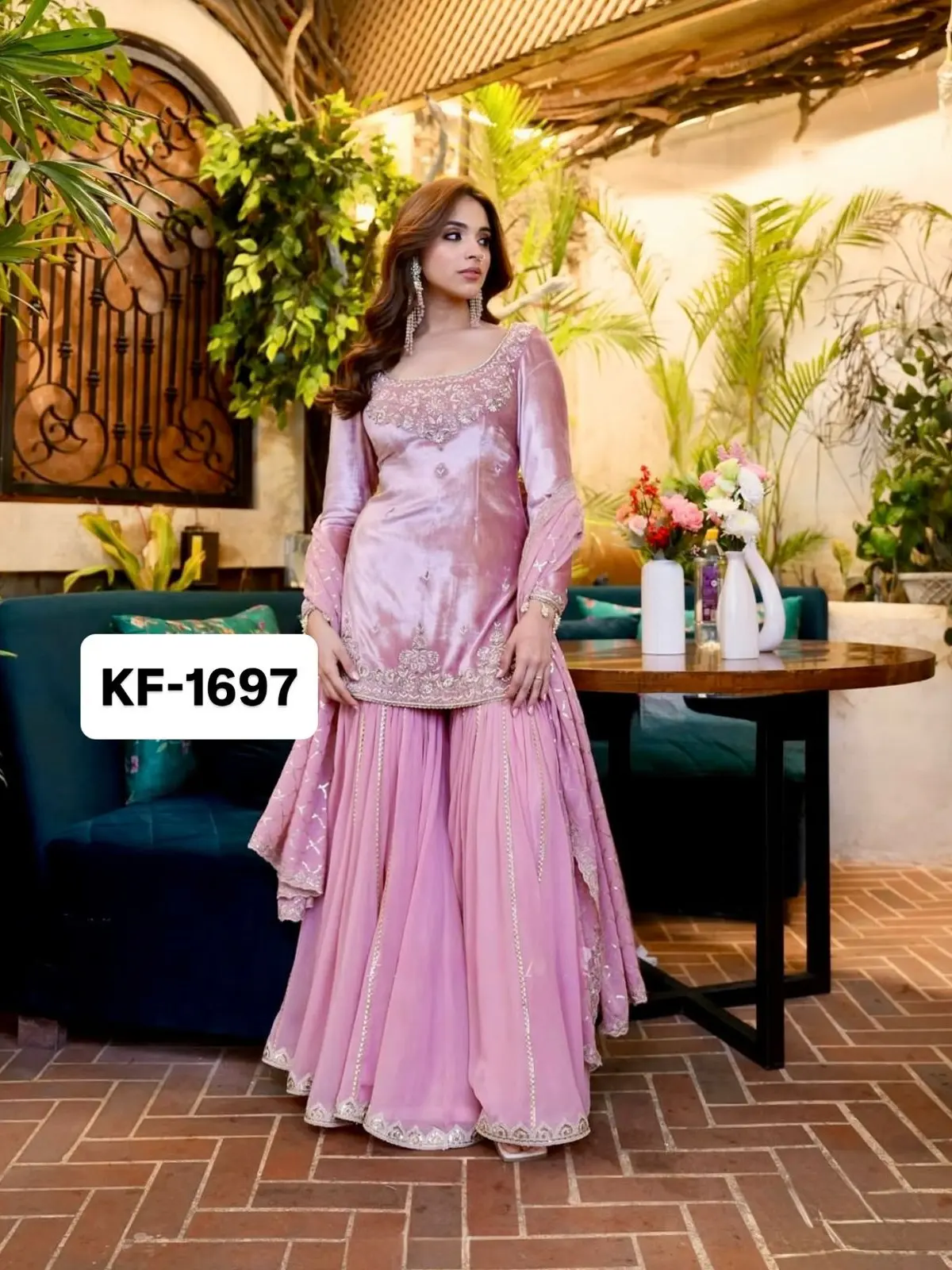 LG-1987 – Designer Roman Silk Suit with Sequence Embroidery, Plazzo, and Dupatta
