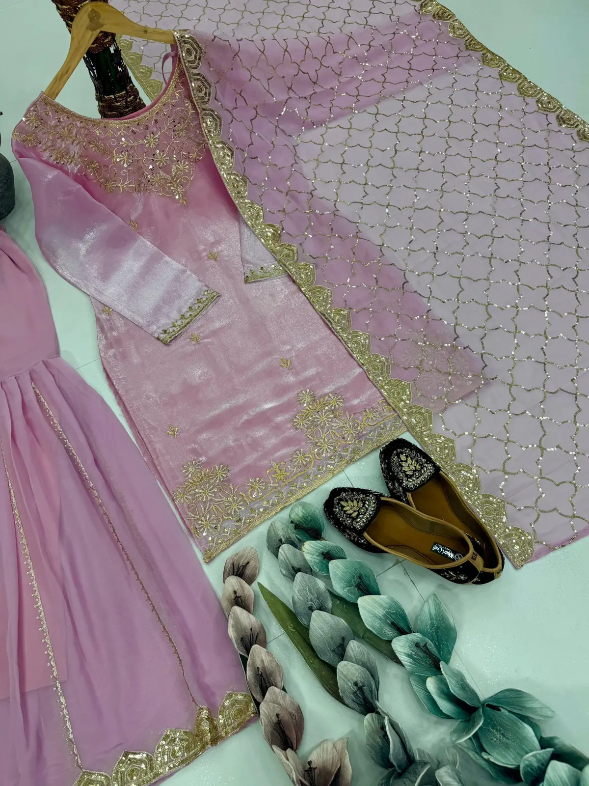 Designer Jimmy Choo Organza Embroidered Sharara Set