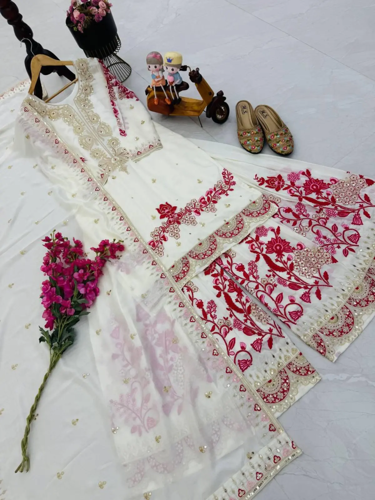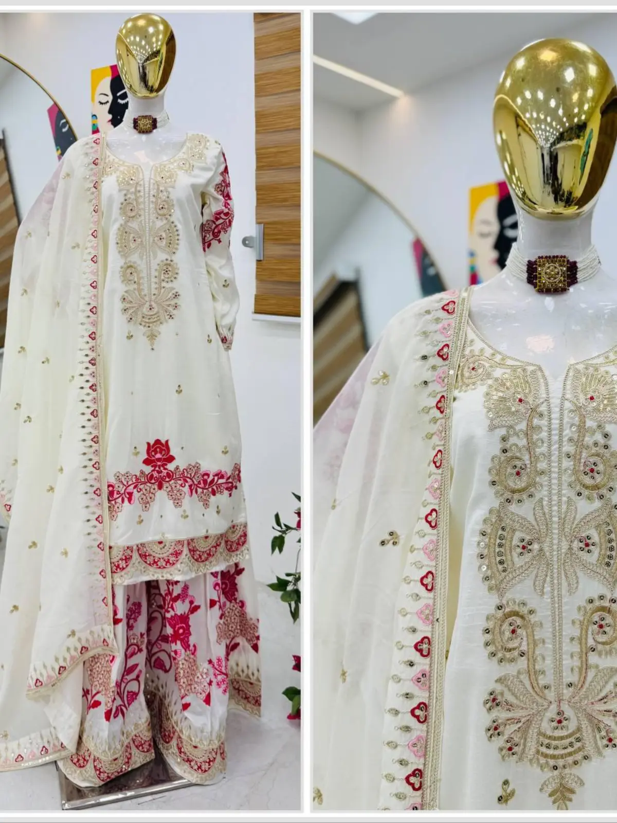 Be the first to review “Designer Vichitra Silk Partywear Top, Sharara & Dupatta Set”