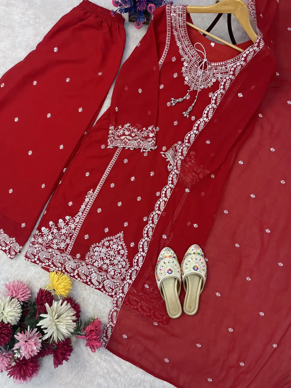 Designer Wear Sequence Embroidery Top, Plazzo, and Dupatta Set