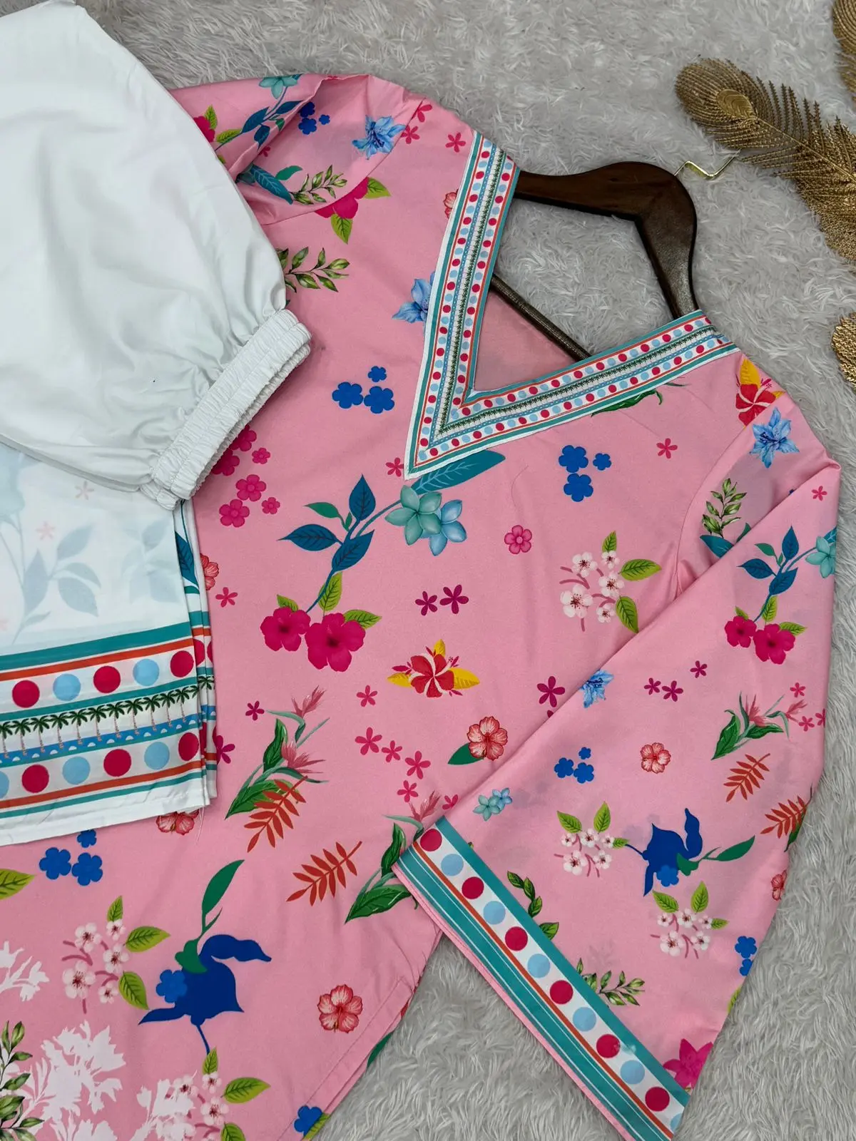 Discover effortless elegance with our upcoming traditional digital print co-ord set. Designed in pure natural crepe fabric, this 2-piece ensemble includes a full-sleeved top and matching plazzo pants – both featuring vibrant, digitally printed patterns. Perfect for festive gatherings, day events, or casual ethnic outings.