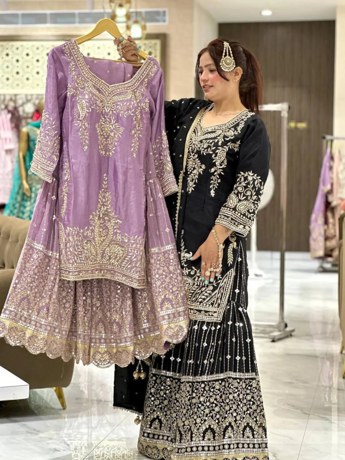 Be the first to review “Elegant Chinon Silk Sharara Set”