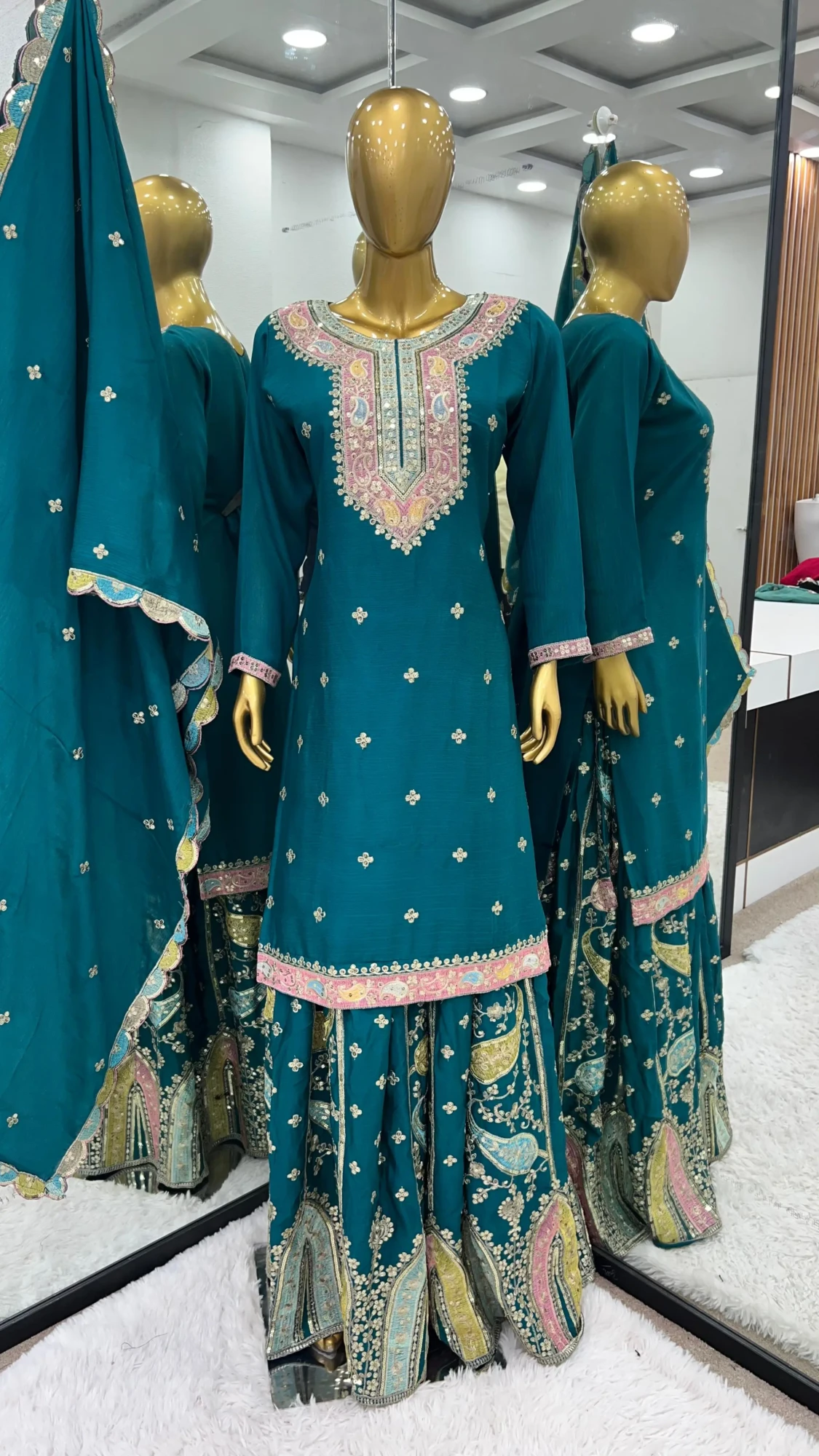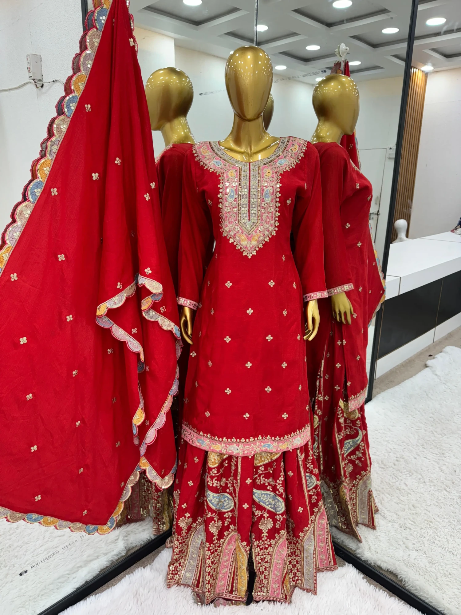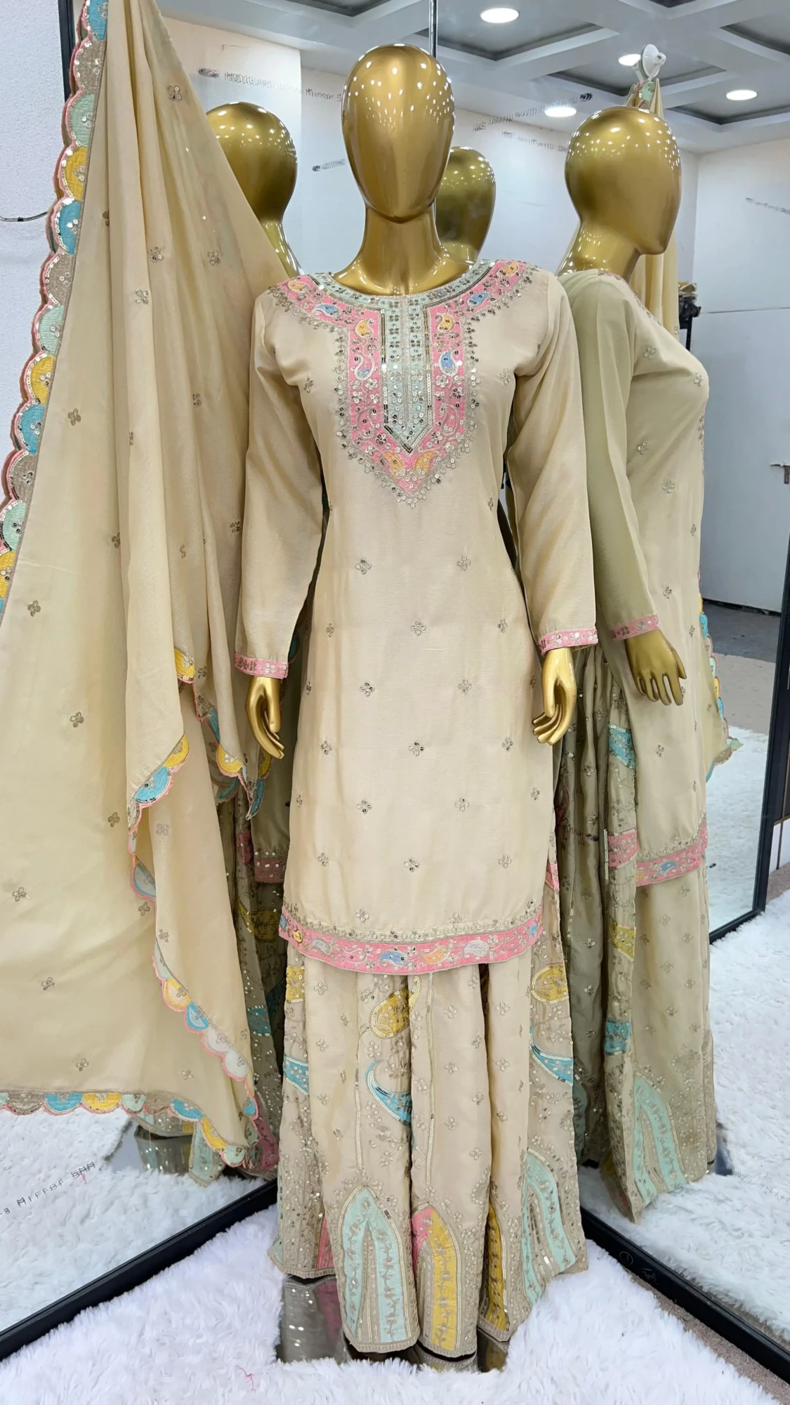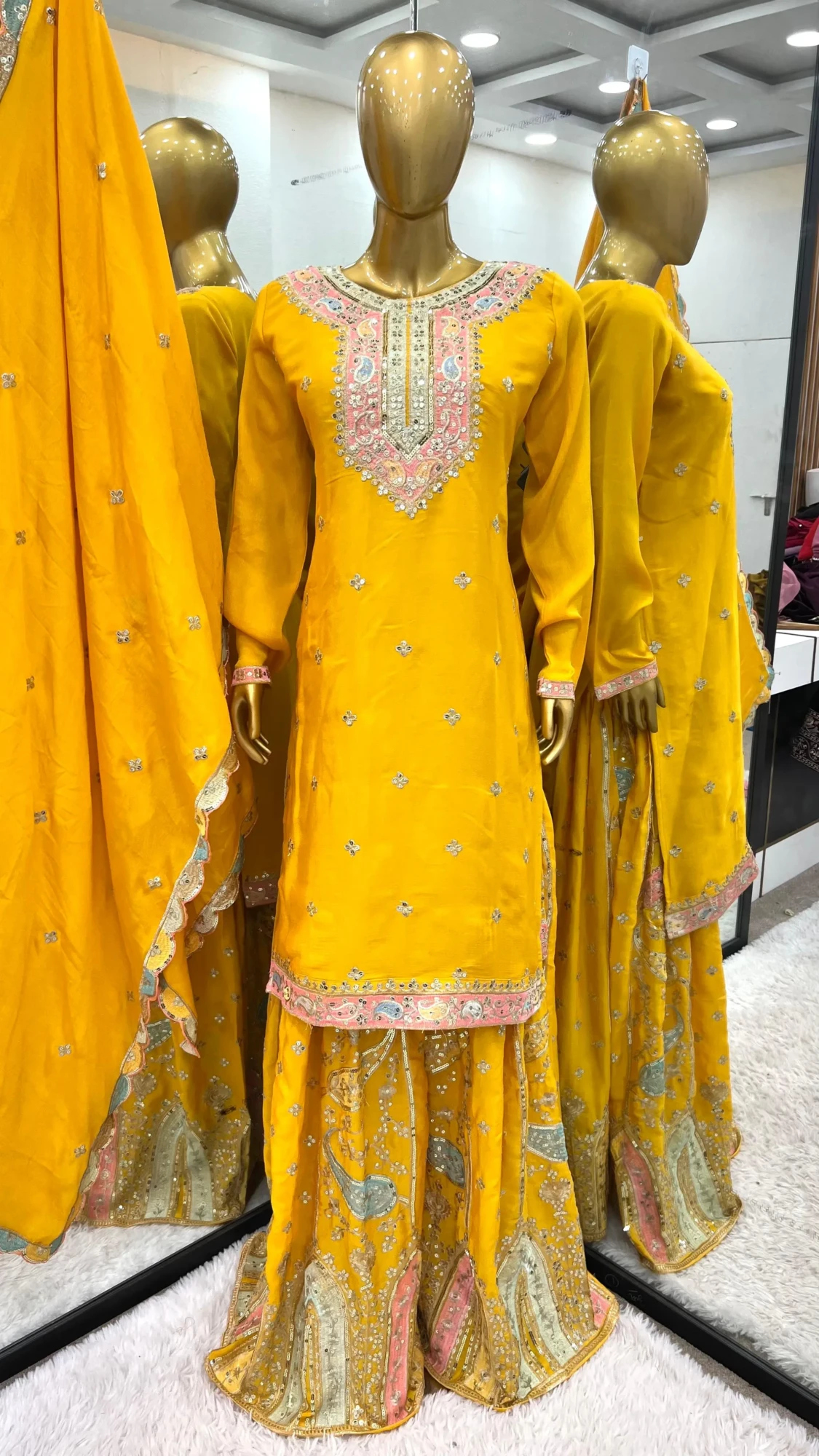 This designer sharara set is the perfect blend of luxury and tradition, ensuring you make a stunning statement wherever you go.