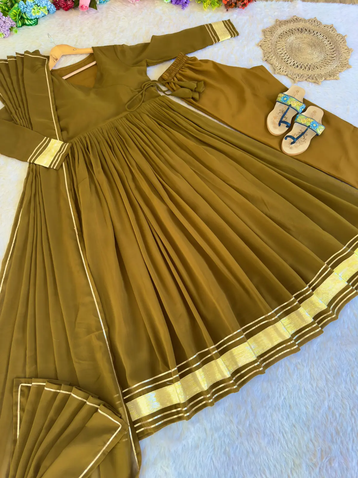 New Designer Faux Georgette Embroidery Sequence Work Gown with Dupatta