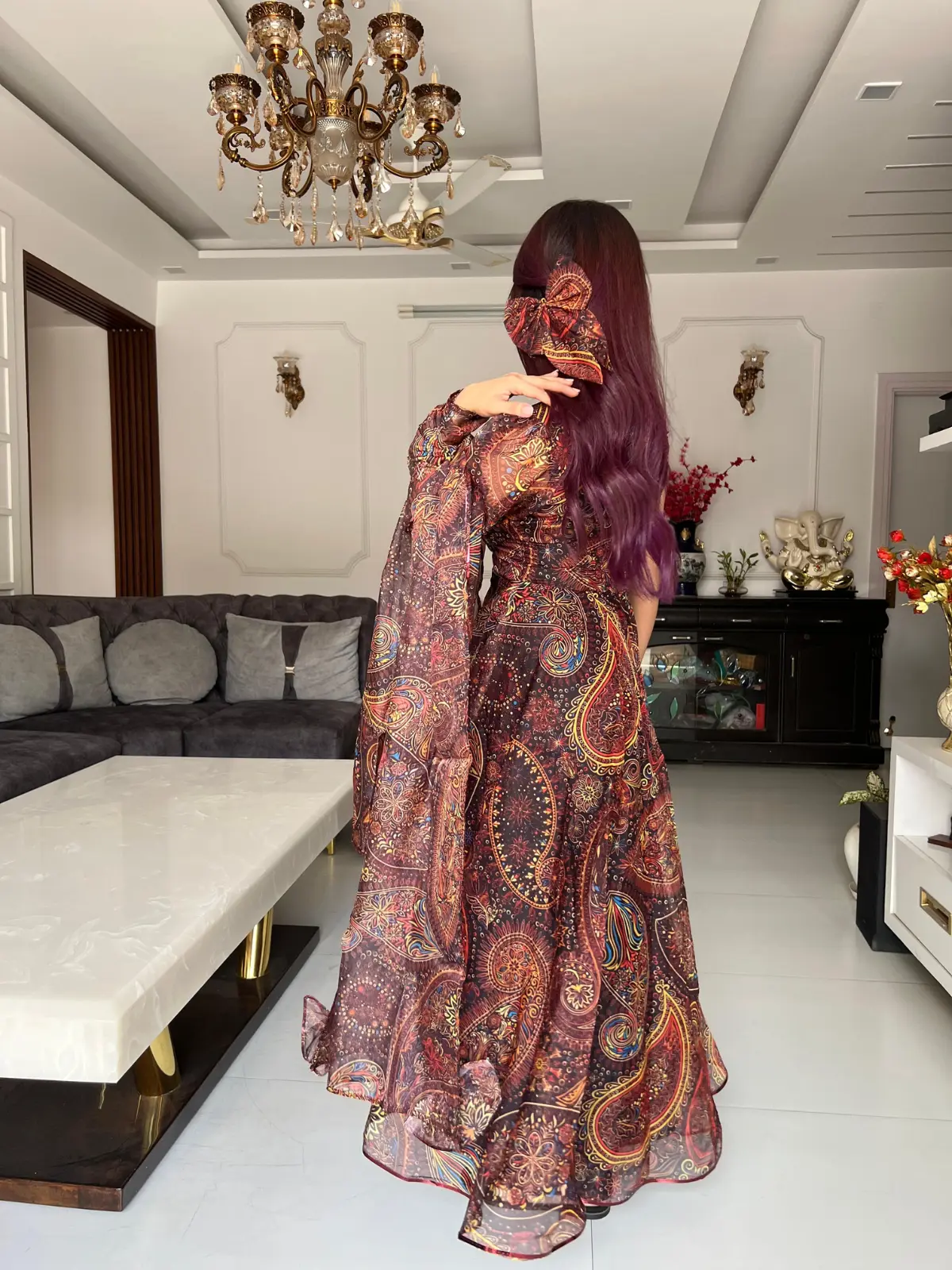 Designer Satin Finish Party Wear Viscose Georgette Gown with Dupatta – DN-488