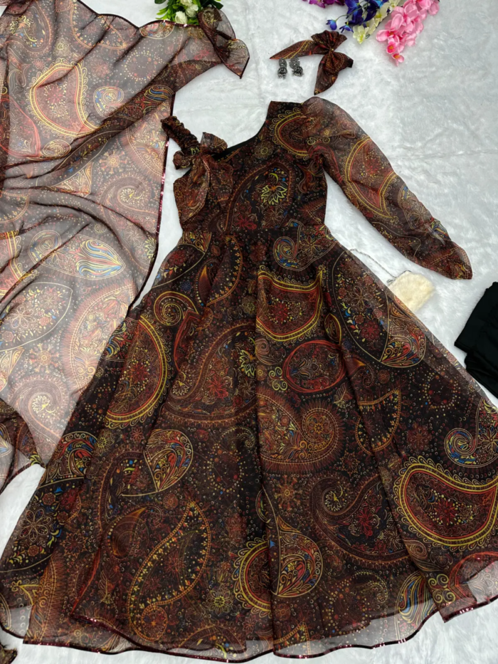 New Designer Faux Georgette Embroidery Sequence Work Gown with Dupatta