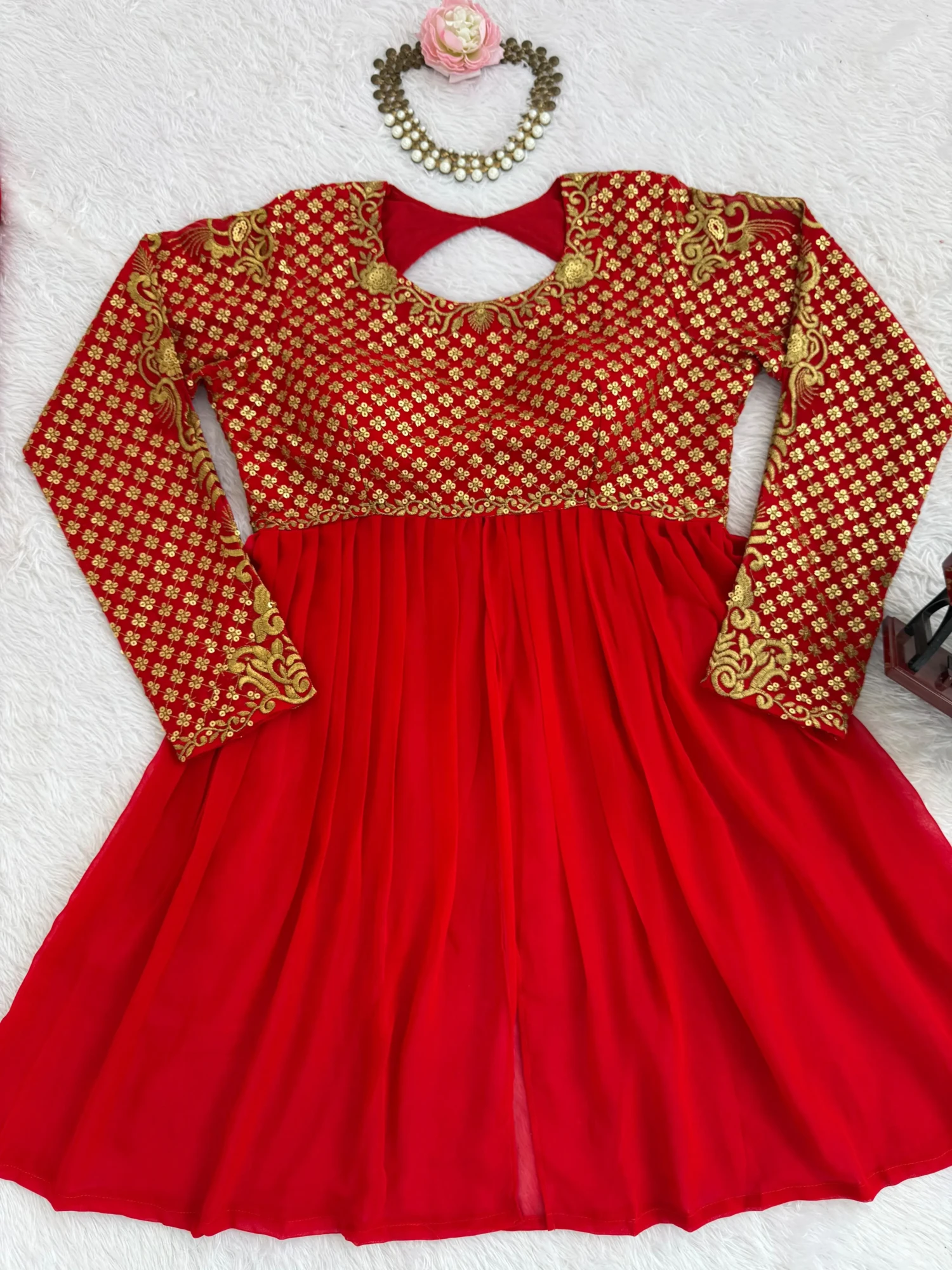 Work: Intricate Thread with Sequence Embroidery (Front & Back)