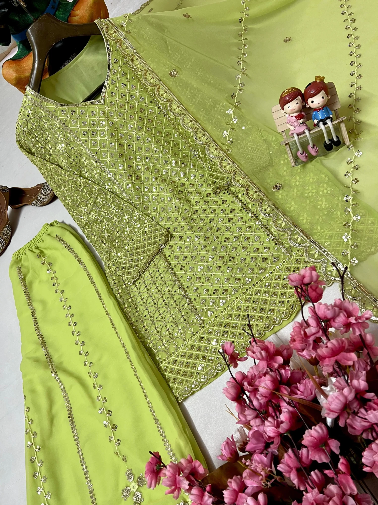LC-1361 – Heavy Georgette Embroidered Kurti & Plazzo Set with Dupatta