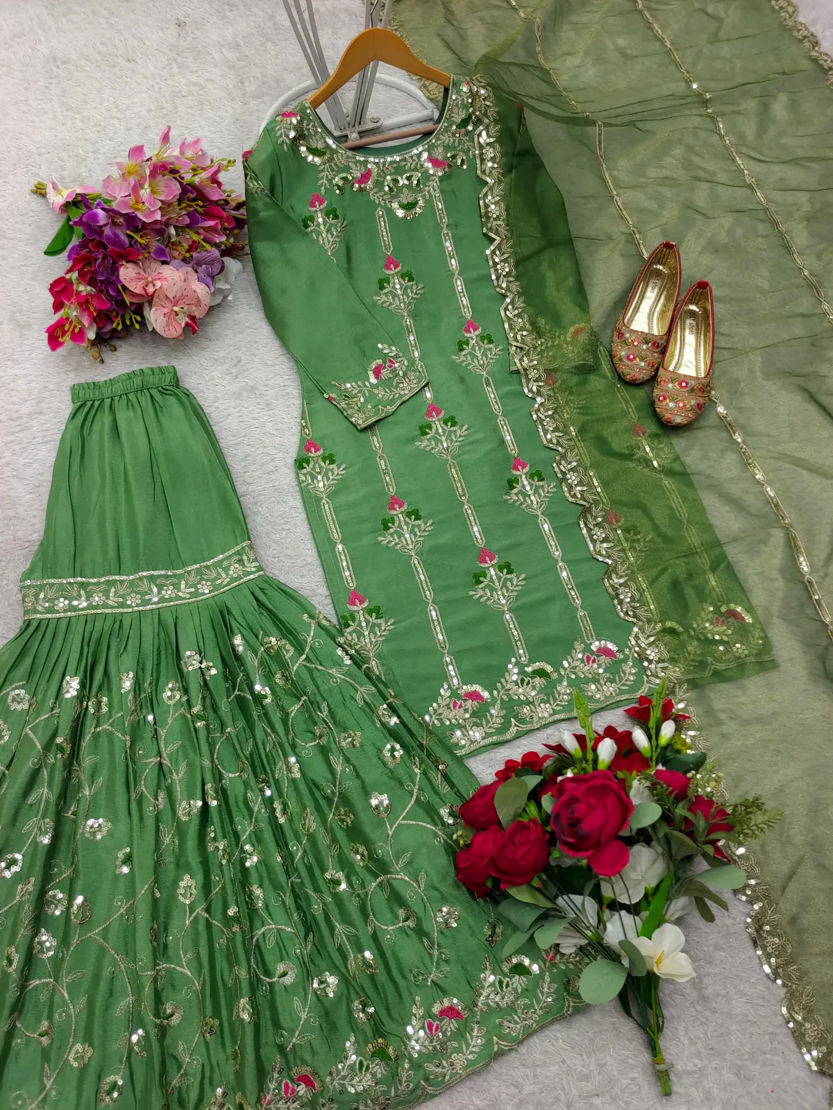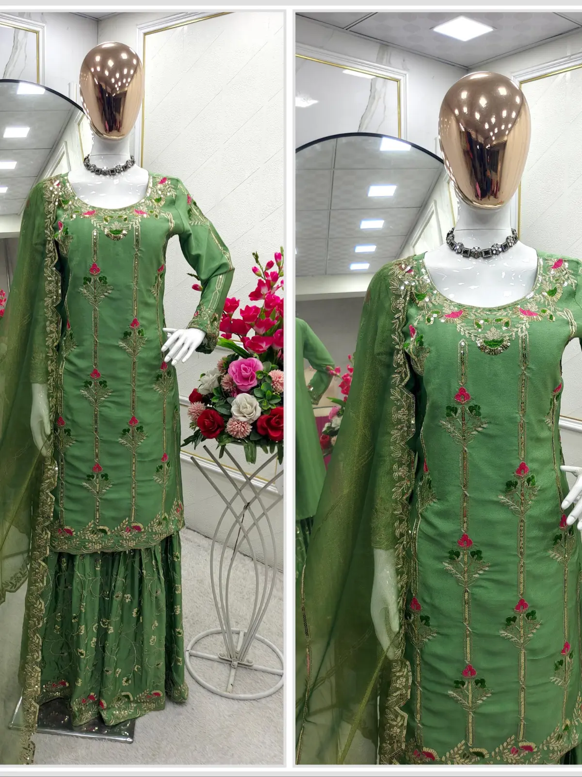 Step into elegance with this designer Chinon ensemble — ideal for parties, weddings, and festive occasions.