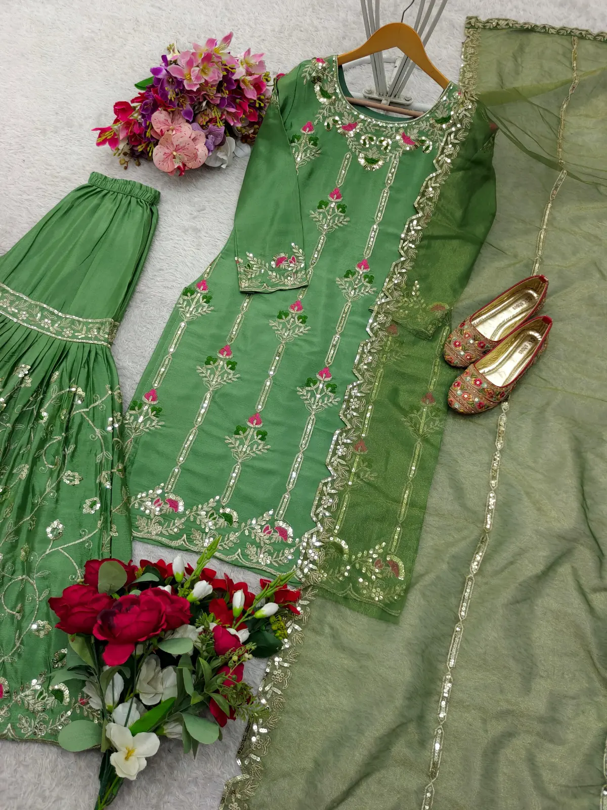 Fabric: Pure Chinon Silk with 5mm Sequin Embroidery Work