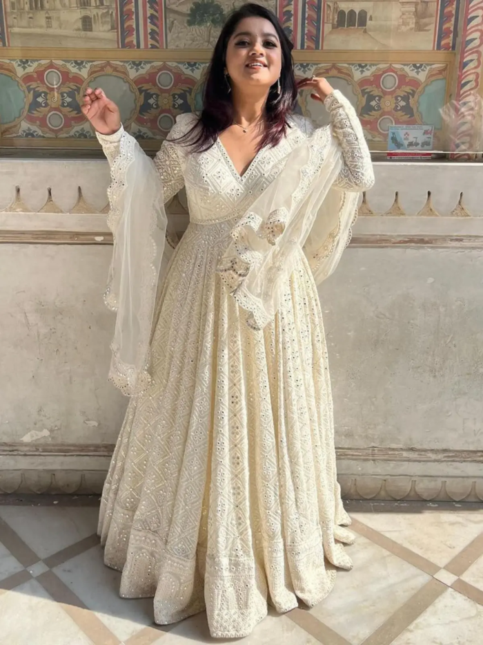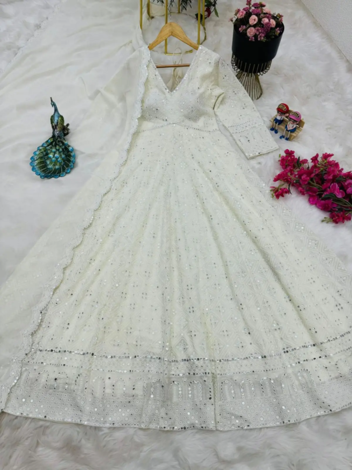 Upgrade your ethnic collection with this stunning designer party wear set, crafted from premium Fox Georgette fabric. Featuring a stylish gown, matching pants, and a beautifully embroidered dupatta, this outfit is perfect for weddings, festive gatherings, and special occasions.