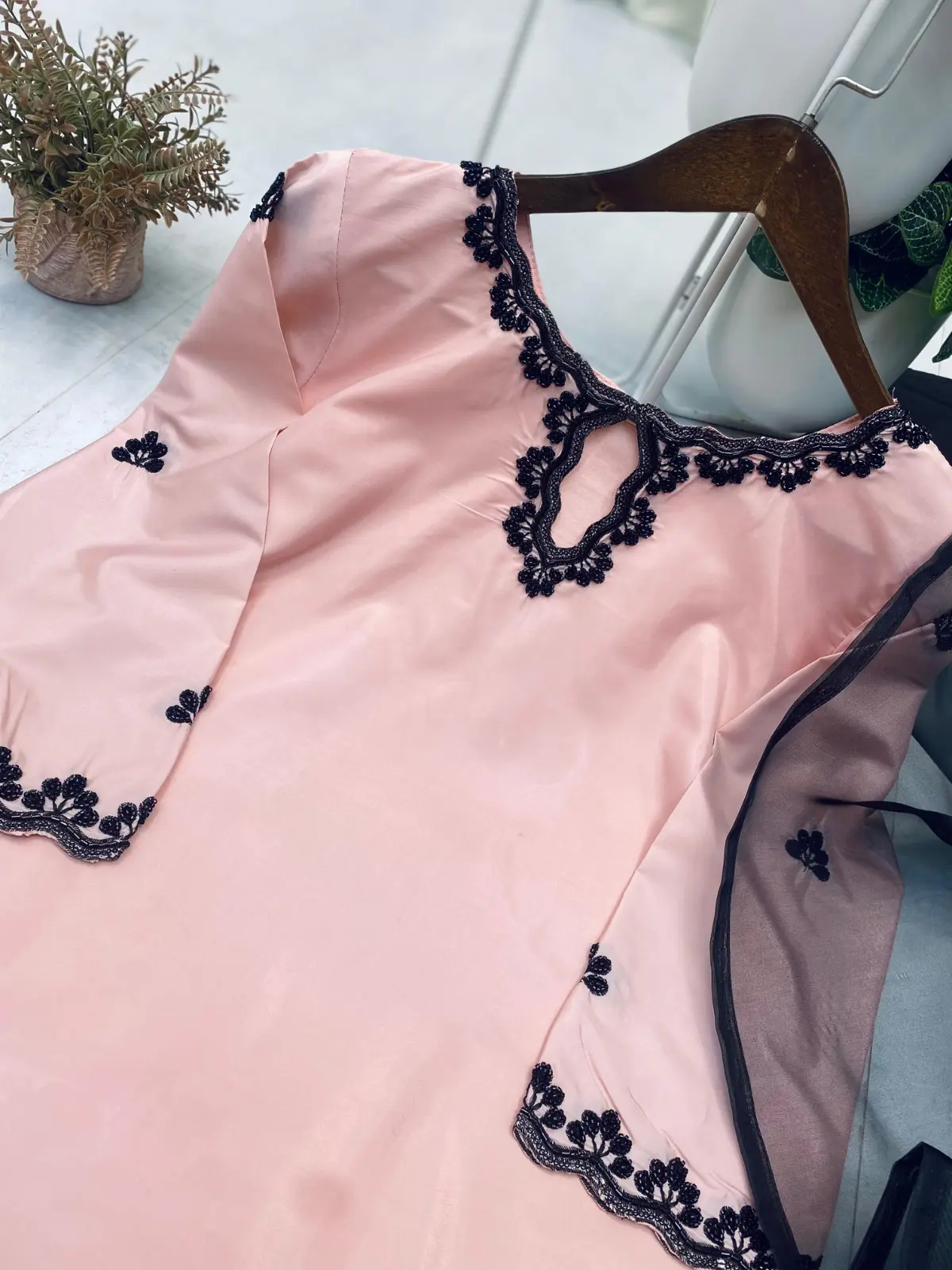Premium Faux Georgette Embroidery and Sequence Work Top-Bottom with Dupatta Set
