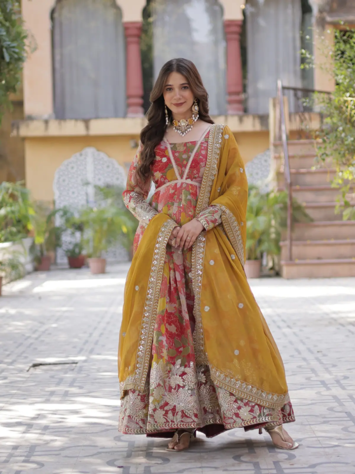 Premium Readymade Alia Cut Gown with Dupatta Set – 2025 Exclusive