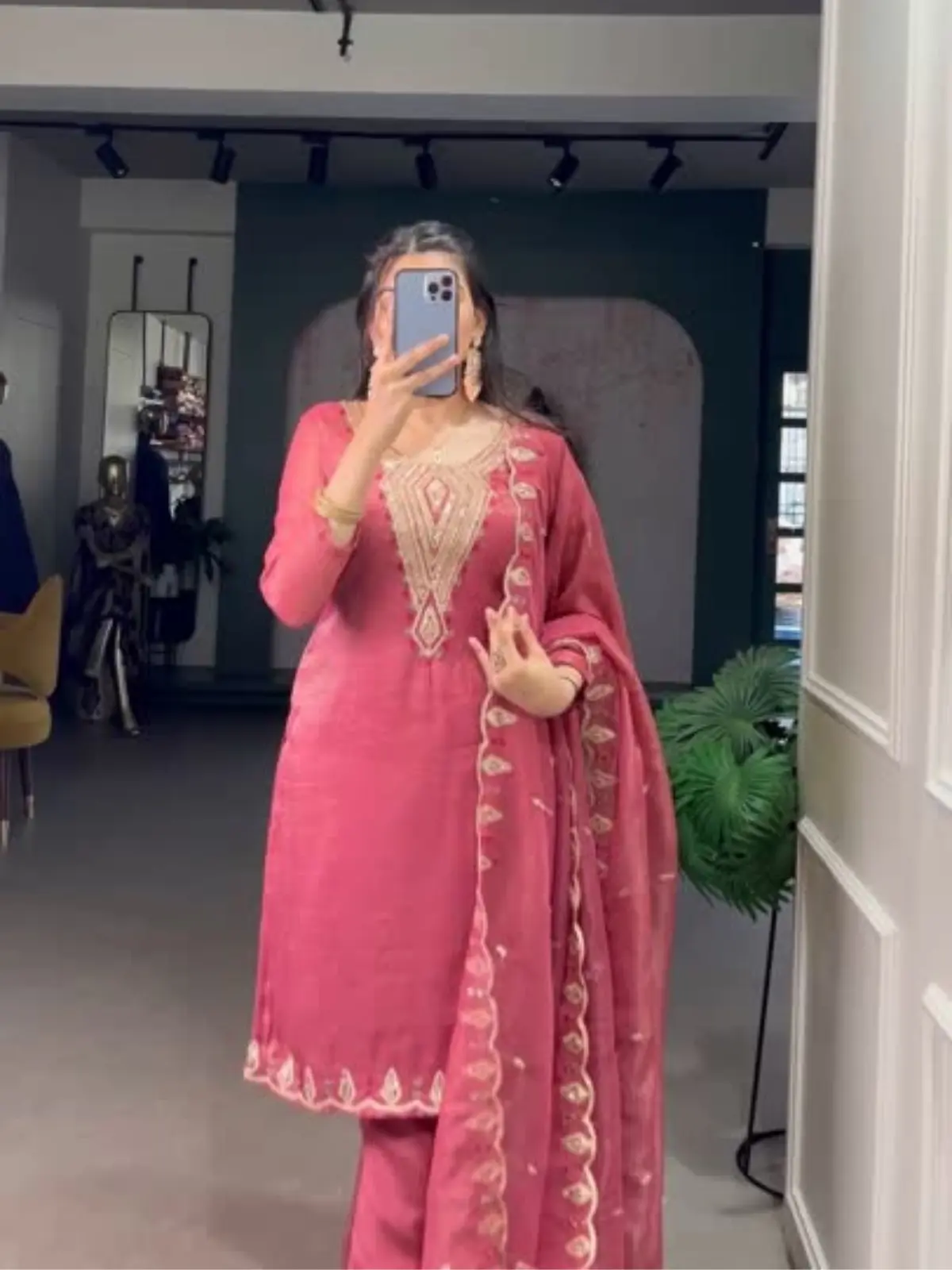 Turn heads with this stunning three-piece ethnic dress set—gracefully crafted in shimmering pink and silver tones. Ideal for festive occasions, evening gatherings, or when you want to make a stylish statement.
