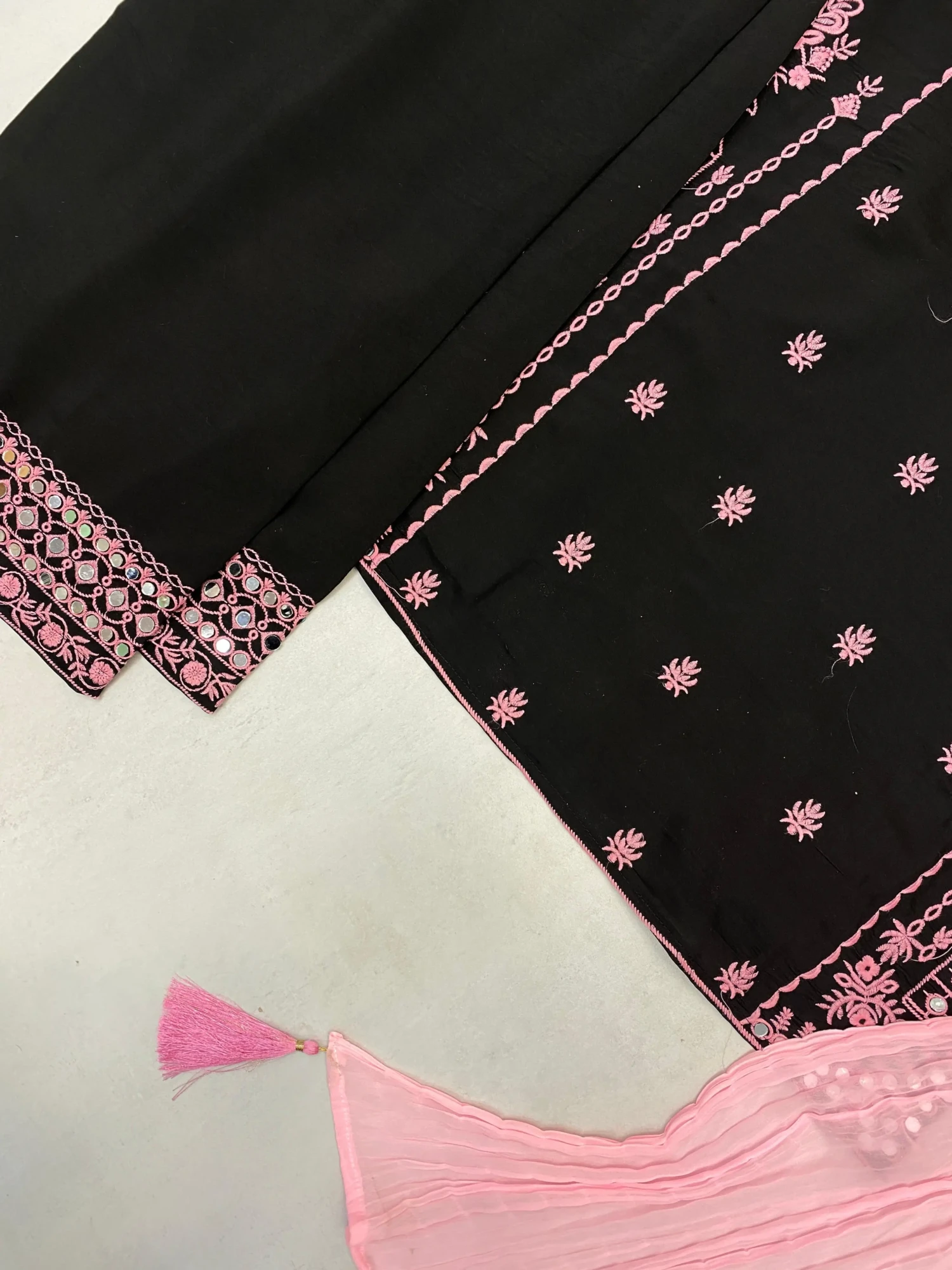 Work: Embroidery with Real Mirror Work (Front & Sleeves)