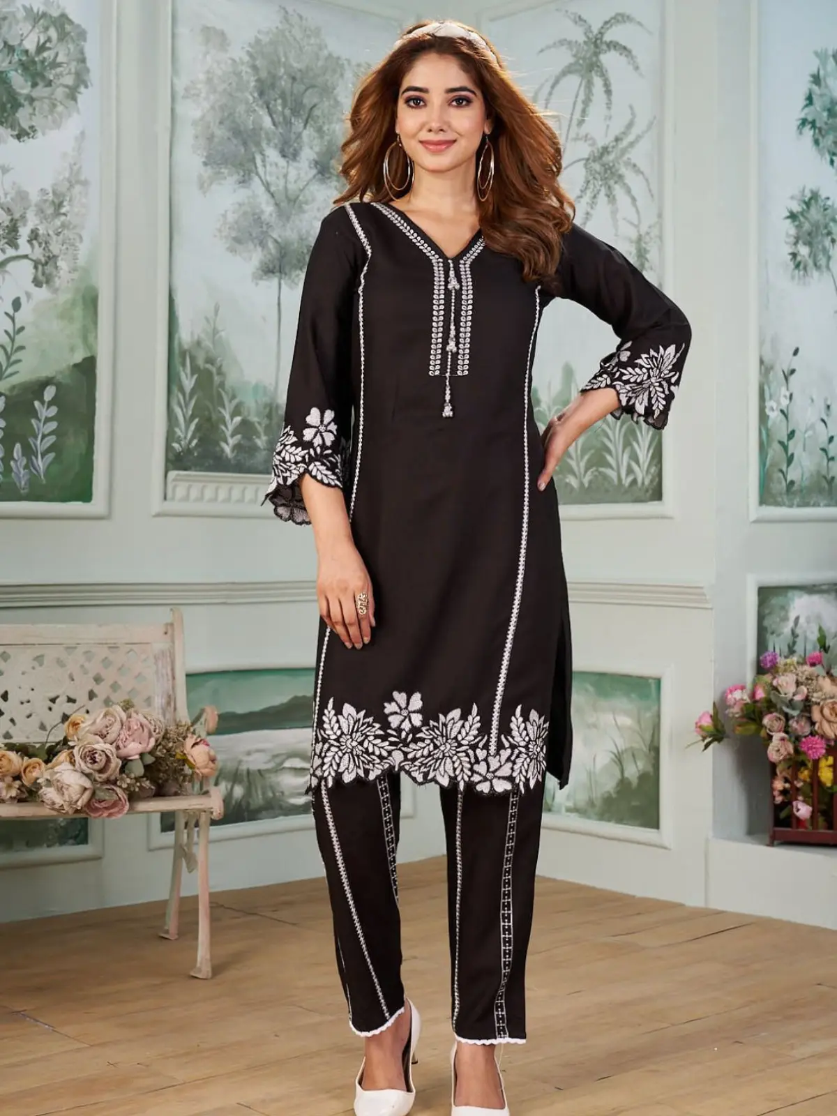Rakhi Special Premium Khadi Cotton Co-ord Set with Schiffli and Thread Work – Top & Farsi Pant