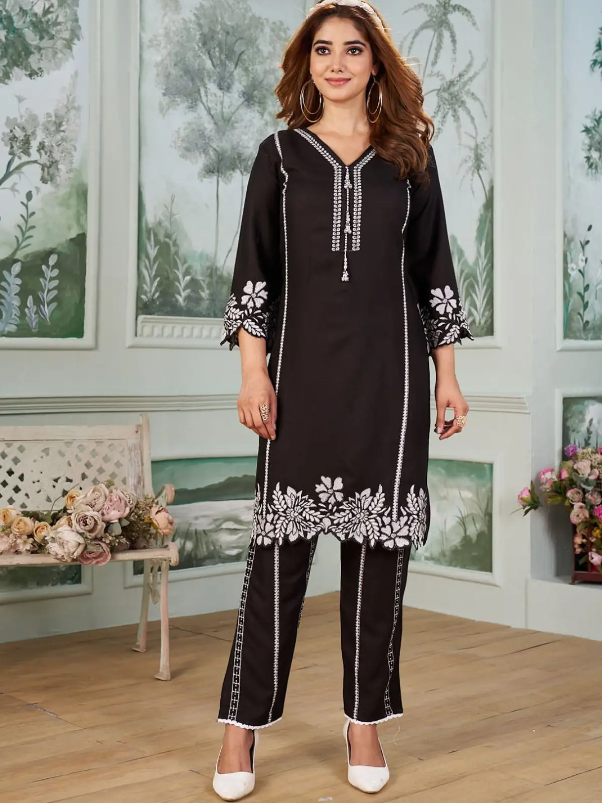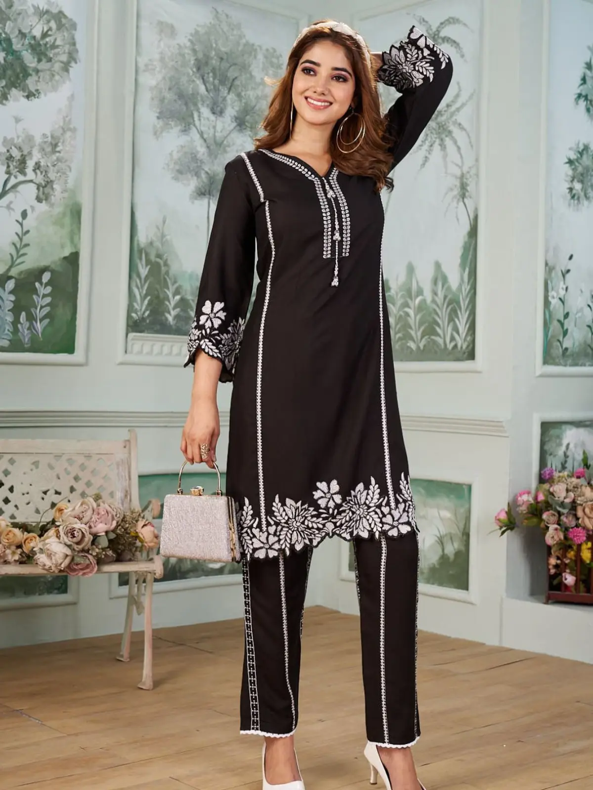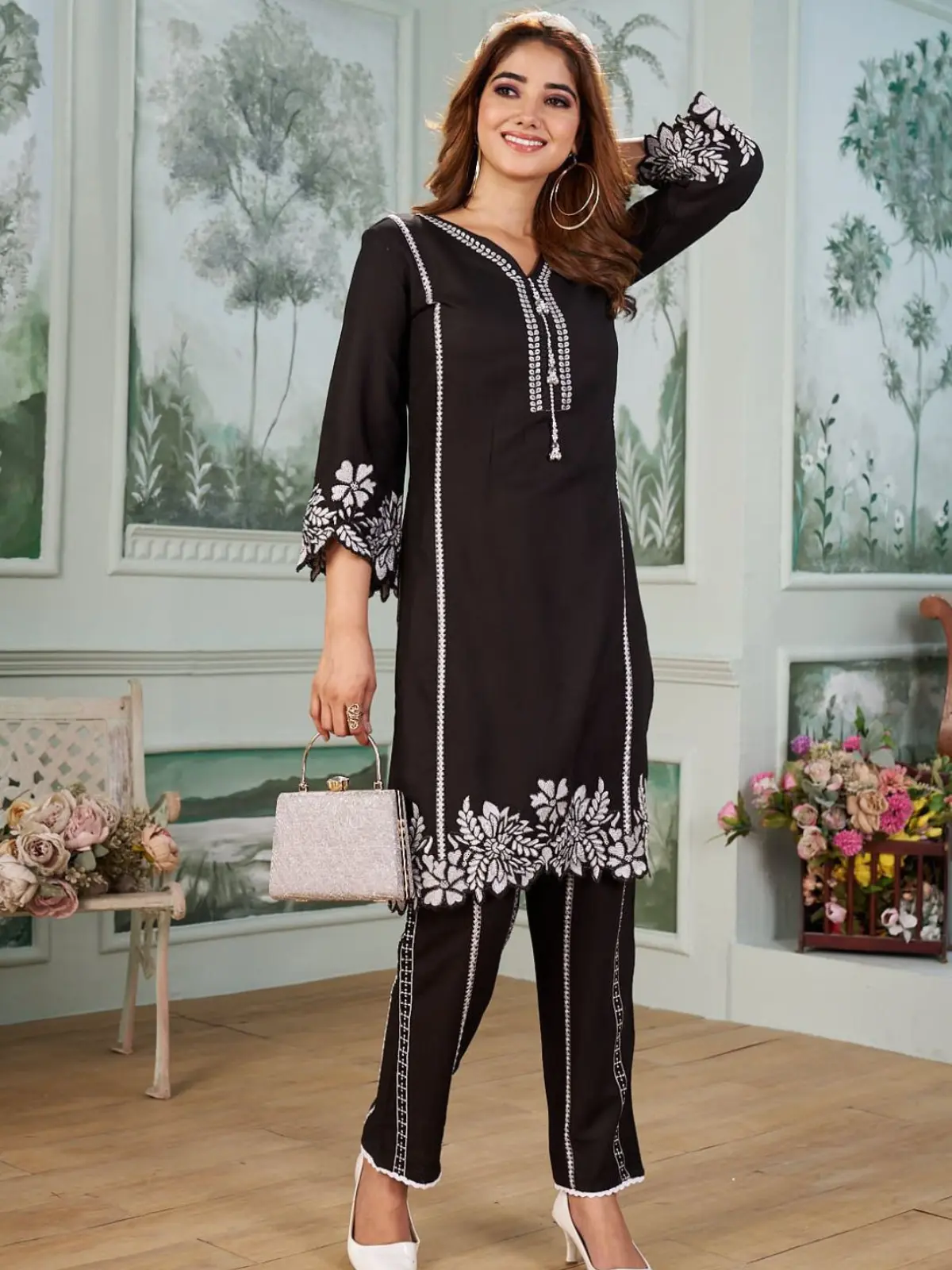 Premium Heavy Chinon Co-ord Set with Embroidery Sequence Work – Stylish Two-Piece Ensemble